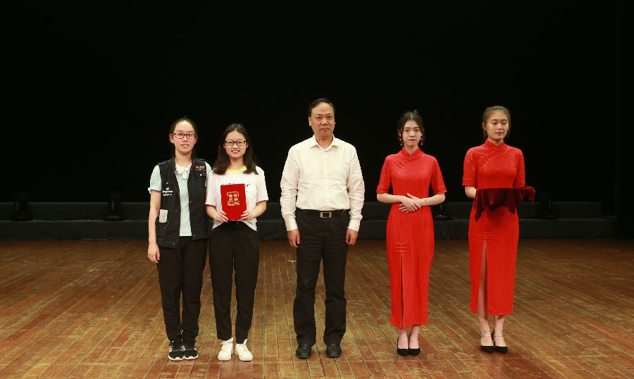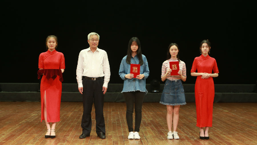 陈章龙书记、张为付副校长为获奖班级颁奖,并合影留念。