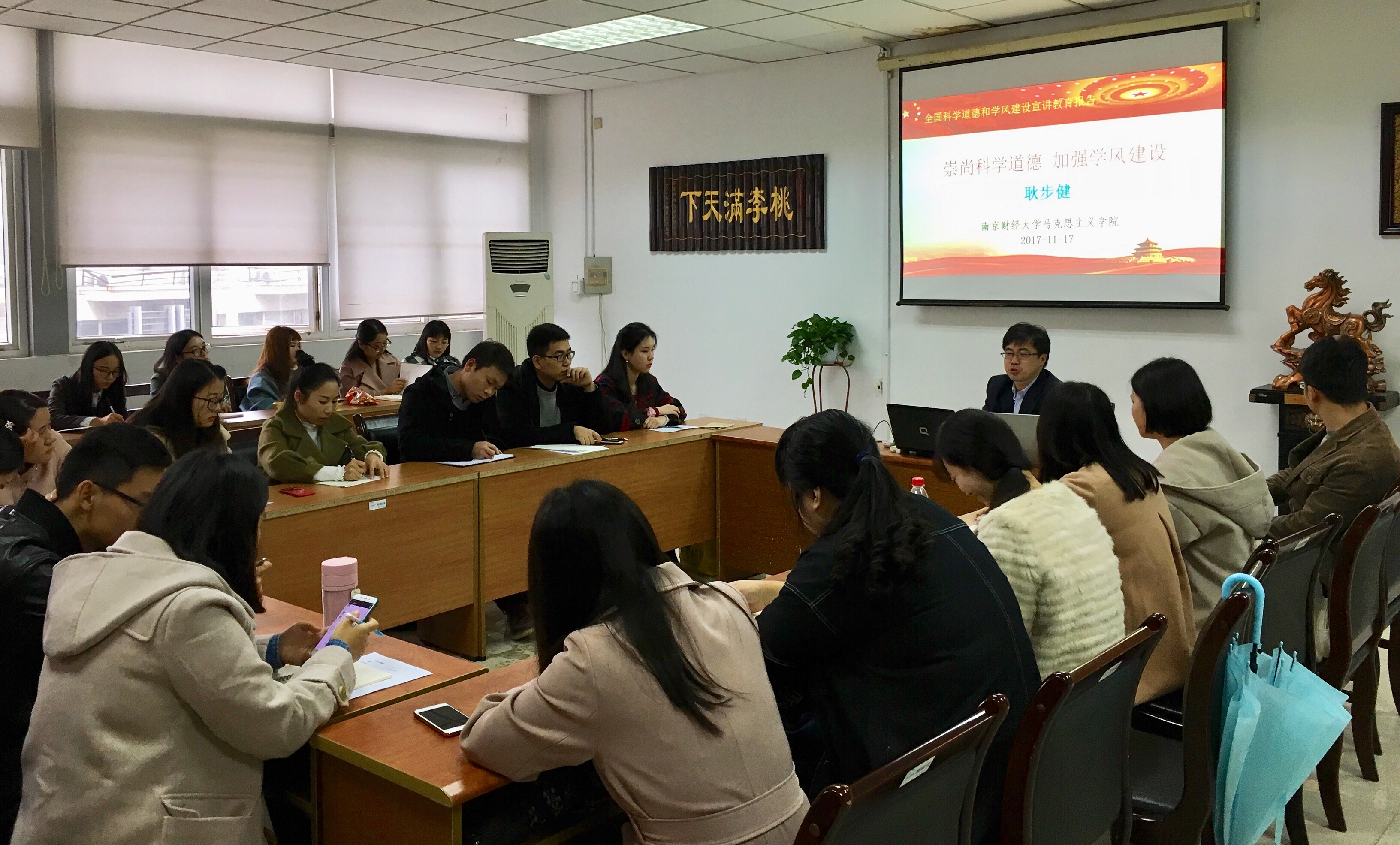 在德正楼507室举办“崇尚科学道德、加强学风建设”专题讲座。91娱乐官网