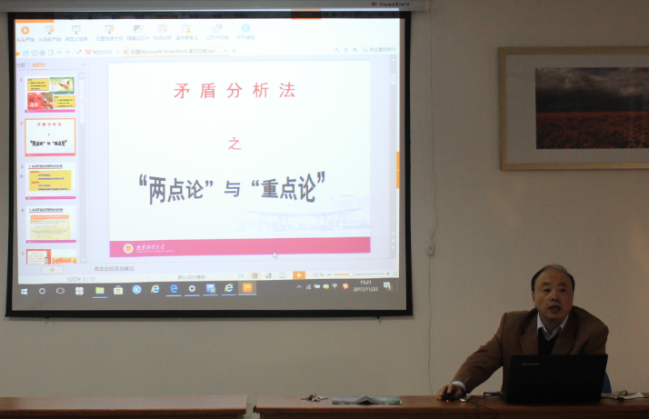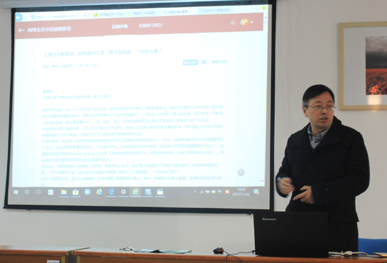 第四届思政课教学比赛在德正楼508室如期举办。本次教学比赛要求参加比赛的教师,准备某一个完整知识点的讲授内容(知识点涉及党的十九大报告新思想、新观点、新提法尤佳),制作成独立的PPT和教案,讲课时间为20分种左右。由校督导组成员、本院教师、学生构成的评委组按照91娱乐官网
