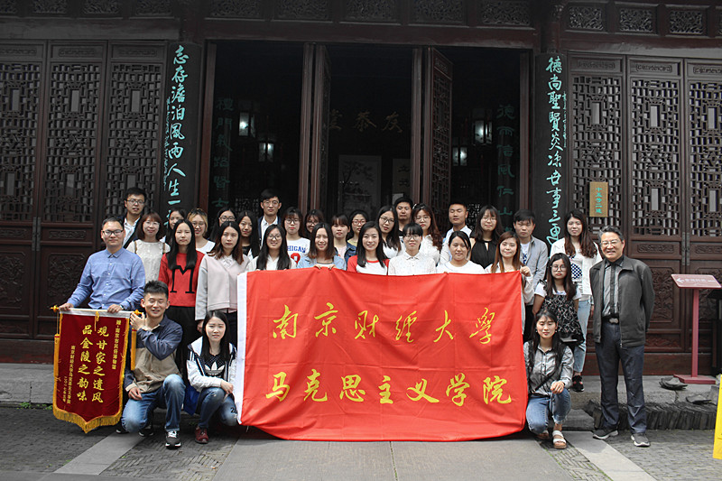 研究生代表向南京市民俗博物馆赠予了“观甘家之遗风,品金陵之韵味”的活动锦旗,全体同学和甘櫯老师在甘家大院友恭堂前合影留念。