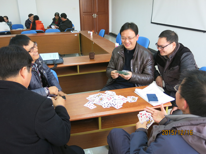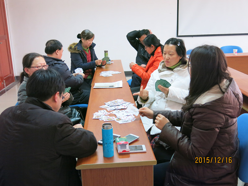 12月16日下午,91娱乐官网 会议室欢声笑语,91娱乐官网 分工会迎新年扑克牌比赛正在热烈进行中。每位参赛队员都憋足了劲,有的凝神思考,有的恍然大悟,观战教工有的出谋划策,有的高声叫好,现场洋溢着欢乐和谐的气氛。通过比赛,促进了相互交流,加深了感情。