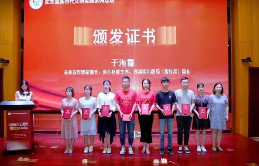 8名研究生颁发了如东县青年马克思主义宣讲团荣誉成员证书。