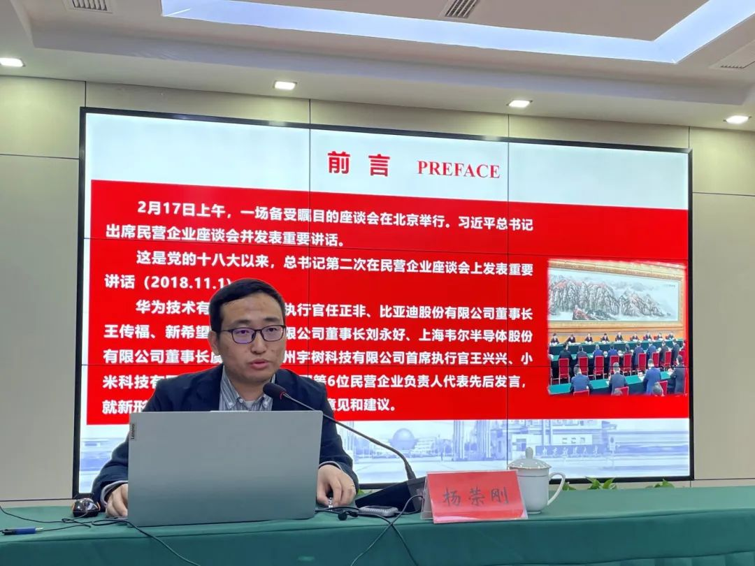 金湖县委统战部举行“同心大讲堂”专题讲座。91娱乐官网 杨荣刚副教授围绕学习贯彻民营企业座谈会精神进行了专题讲解。