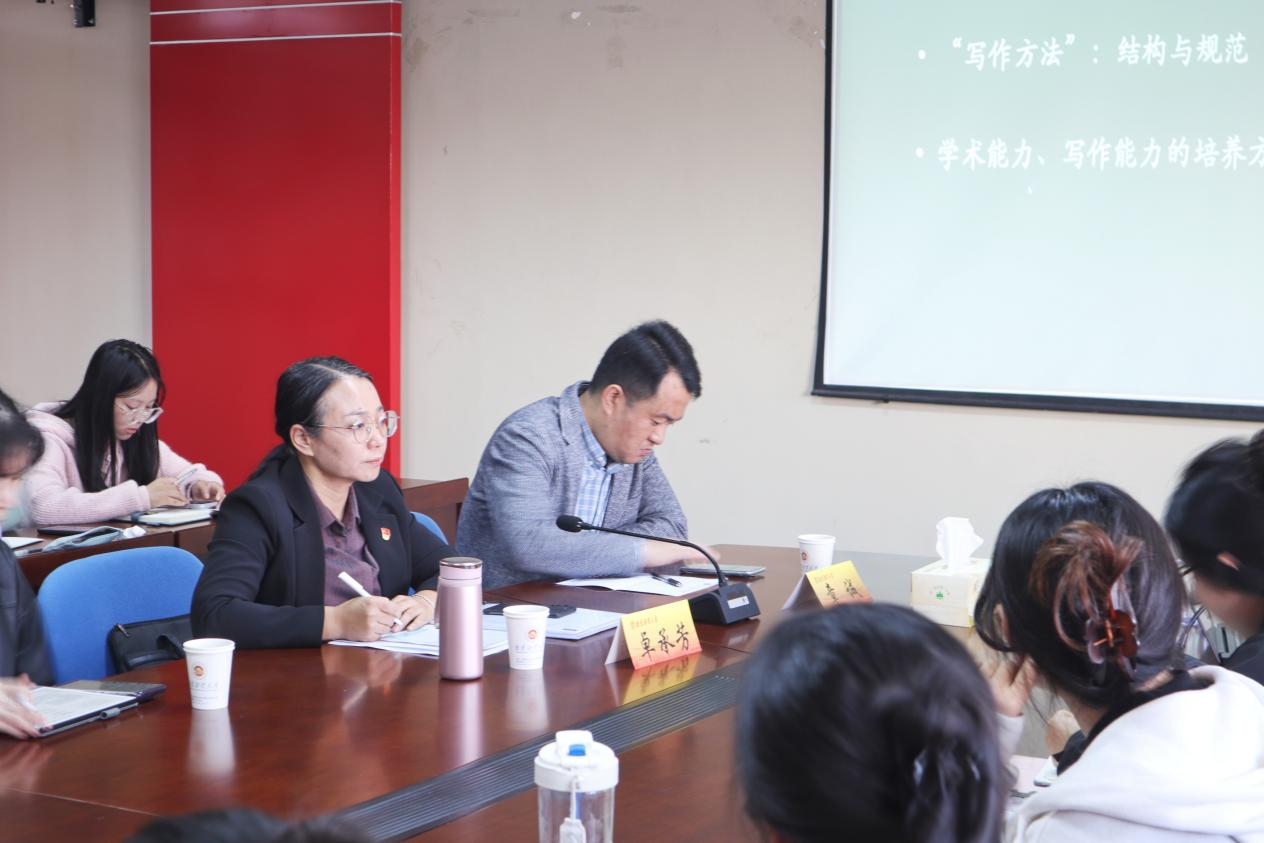 师生作题为“论文写作方法”的学术报告。报告会在德正楼508会议室召开,由院长卓承芳教授主持,2023级、2024级研究生参与学习。