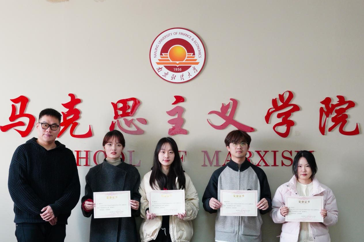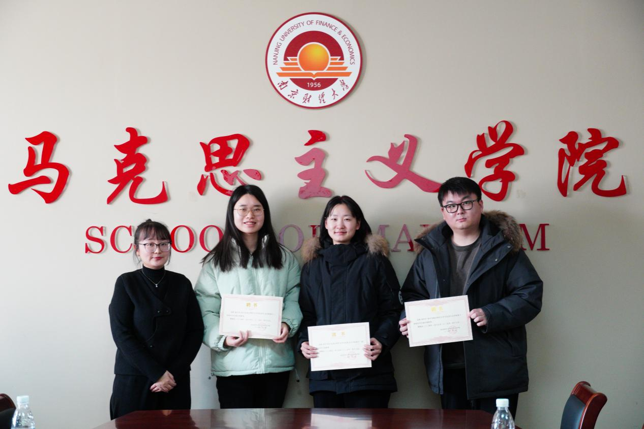 领导及老师为第十一届研究生会主席团成员颁发聘书,同时为2023-2024年度优秀研究生干部颁发荣誉证书并合影留念。