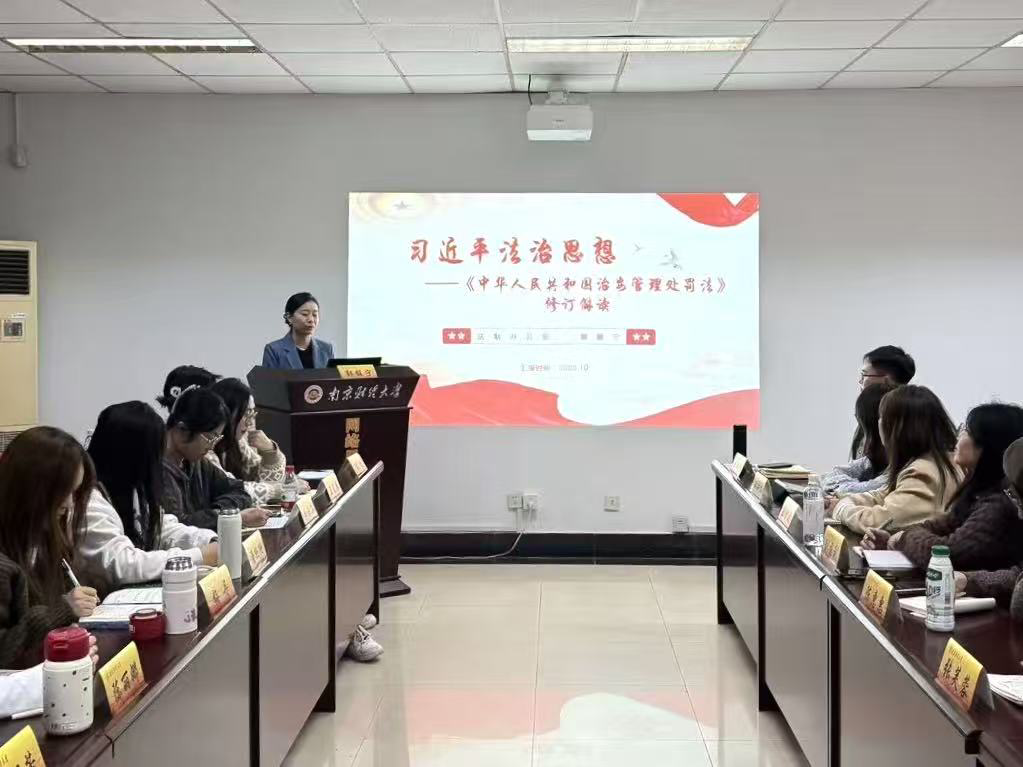 分党校系列培训第七讲在校网络思政工作中心举行,特邀校法制办、法务科副科长郭馥宁为2025级入党积极分子、全体党员讲授主题为“学习贯彻习近平法治思想之《中华人民共和国治安管理处罚法》修订解读”的主题党课。