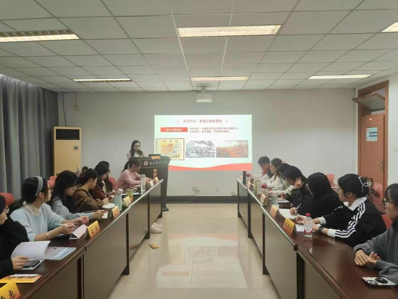 分党校系列培训第十讲邀请了党支部书记王萌为全体党员、入党积极分子讲授题为“理想信念:中国共产党铸就百年辉煌的力量源泉”的主题党课,党课在校网络思政工作中心举行。
