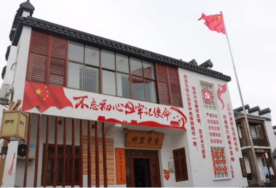 迎着正午的阳光,党员同志们乘坐校车到达目的地。大家参观了“桦墅学堂”农家书屋。“桦墅学堂”坐落于山脚,是由图书角、党员之家、耕读堂、电子阅读室组成的农家书屋,占地约100平方米。村民可以在此开展日常读书、观影活动。里面还设有“有事好商量”协商议事室,充分展现了桦墅村民主协商、村民自治的治理智慧。后续党员同志们又参观了党建长廊、乡村民宿、周冲水库、巡回法庭等地,深入实地体验了桦墅村的巨大变化,在青瓦白墙、绿树掩映的景色中实地感受到了乡村振兴带来的农村新面貌。