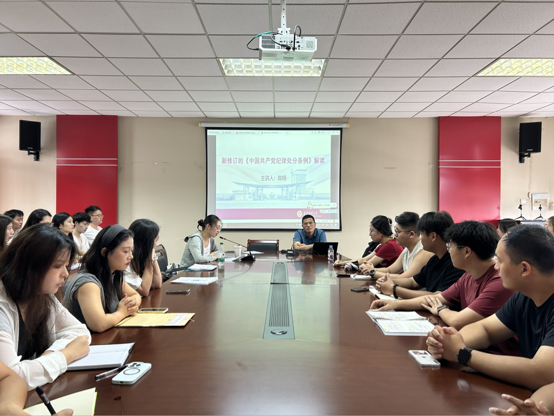 党委书记陈翔老师为新生讲授党课——对新修订的《中国共产党纪律处分条例》解读。